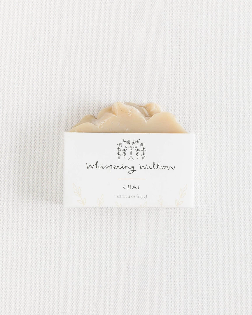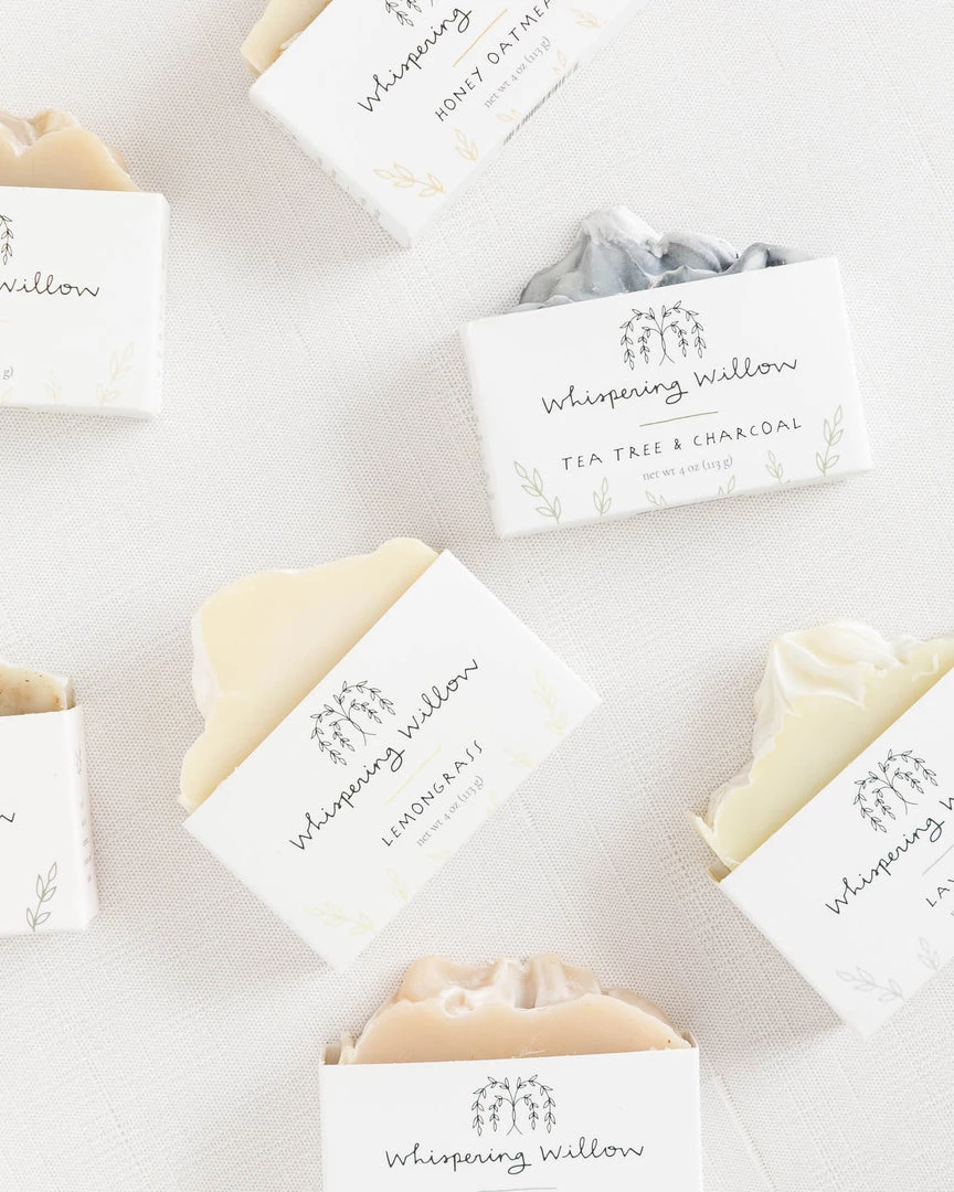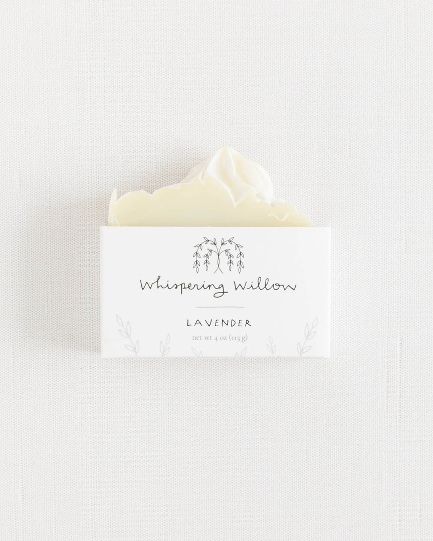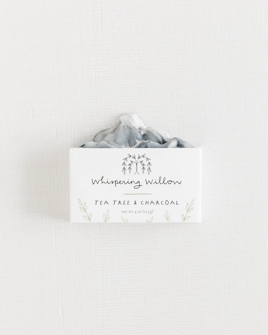 Hand-wrapped in picture-perfect packaging, Whispering Willow soap provides rich lather from their blend of organic oils, shea butter, and activated charcoal provides deep cleansing while moisturizing the skin and providing essential nutrients.